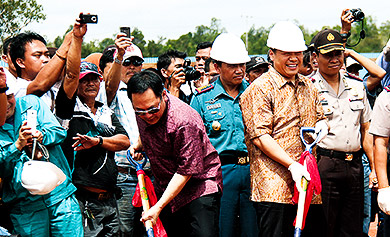 中國宏橋原鋁生產全部采用電流強度為400KA以上的大型陽極預焙電解槽。其全球首條全系列600KA特大型陽極預焙電解槽于2014年12月投產運行,具有單槽容量最大、噸鋁投資最少、液態鋁質量最好、能耗最低、生產環境最優、自動化程度最高、用工最少的優勢,在2015年6月5日通過了中國有色金屬工業協會科技成果評價,整體技術達到了國際領先水平。